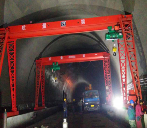 所以需要在隧道內架設一臺小型龍門吊,將微型鋼絲繩電動葫蘆懸掛在龍門吊上。利用電動葫蘆的起吊能力將地面上的重物吊到貨運卡車上,讓卡車把雜物運走,再開始后續的加固工作。